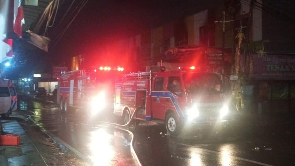 Petugas pemadam kebakaran (Damkar) berhasil memadamkan api yang melalap gudang dekorasi dan empat unit ruko tekstil di Jalan Pajak Raya, Cipadu, Juramangu Timur, Tangerang Selatan. Proses pemadaman dinyatakan selesai pada pukul 04.41 WIB, Senin (2/2/2026).